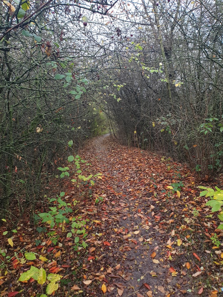 The forest is looking pretty stunning, even in its bleak approaching-winter with added howling wind and mud state. I’m starting to have a sense of familiarity with the forest, like it’s given up trying to impress me and just lets me wander round doing my thing. The trees look spindly and barren, but the occasional leaf still clings to a branch. The ground is soaked with rain and I slip about on the paths occasionally despite wearing what I was promised by the bloke in Millets were super grippy shoes. I entered with a pretty bad mood but I’m definitely feeling better already. There’s something to this nature business.