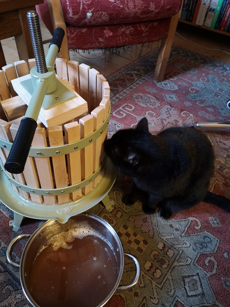 The cat gets involved at various points so there might be a hint of feline spittle in the finished product but it’s all natural. I still haven’t really solved the brick dust problem so cat gozz (is that still a word?) is the least of my concerns. There are all kinds of well-intentioned internet experts who insist on acidity regulators and purifying agents in your cider but I’m going for a natural approach, by which I mean a zero effort approach. I don’t even sterilise the fermentation vessel. I’m living on the edge. A bit of yeast, a weird curly plastic tube in the top of the jug doing something I don’t really understand and now all I’ve got to do is wait. A few short weeks from now, I’ll be necking the cider I was deprived of as a spotty teenager.
