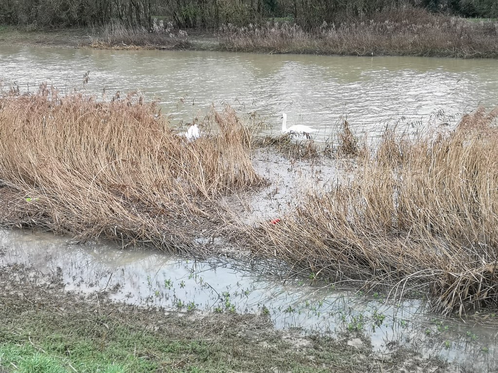 I ambled on, taking time to pause and properly stare at anything that seemed even vaguely interesting, just in case I could scrounge a paragraph out of it. I spent a good few minutes trying to work out whether some floating rubbish was an otter (it wasn’t) and then stopped to watch first one and then a second heron lurch majestically through the air. I’m not sure it’s possible to lurch majestically but I can’t think of a better phrase to describe the flight of a heron. They’re like feathery craneflies, or daddy longlegs to give them their scientific name. There were actually quite a few birds in evidence, presumably taking advantage of the rising water levels. In addition to the herons, I spied a moorhen, some ducks, two swans and some other birds. They probably have names too but those are the only species I can accurately label. Maybe there’s a Grebe. I have no idea.