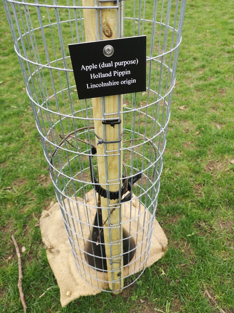 Anyway, the Westgate Fields orchard is a far more impressive affair, numbering twenty trees in regimented rows. There’s a mix of apples, pears and gages and almost all of them have smartly etched labels. Some fruit boffin has also laid a sort of carpet underlay material to protect the space around the infant trunks from predatory grass plants. It’s a good idea that I’ll probably nick.