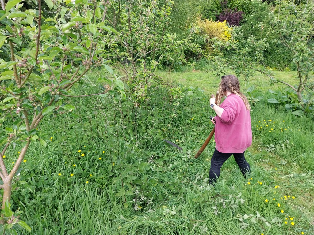 After a bit of a sit down to take in the view, I wander along the rows that are available to me, ostensibly looking for leaf curl and other signs of poor health but really just wanting to touch them. Me and Amy both have a quick go with the scythe but the sharpening stone is nowhere to be seen so it’s a bit of a forlorn task. It will have to wait for another day. For now, I’m just glad to be back home. I try to ignore the “I told you so” grin on the face of my alleged friend. She did tell me though.