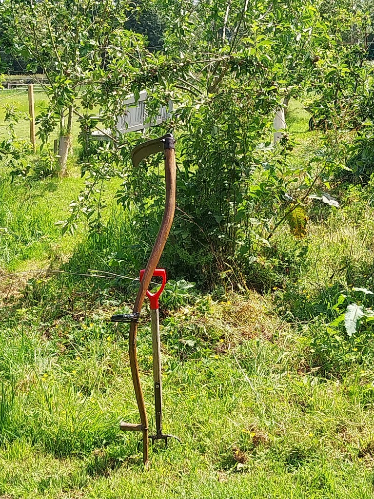 I have a go anyway but I’m doing an awful lot of trampling things down and very little actual scything. Imagine a balding Poldark who has been trapped in a pork pie factory for ten months and then let loose in the glaring mid-day sun. It’s not a pretty picture.