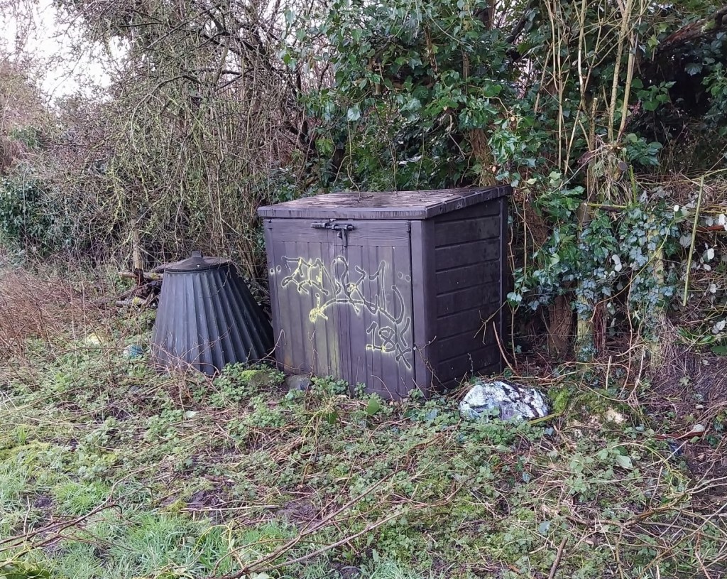 The spot I eventually choose is near neither of those things though; it’s the farthest corner, away from the hustle and bustle of the horse paddock and veg patch, nestled in a Hawthorn corner next to my lurching patriarch Dr Clifford. A few years previous my chain-smoking stepbrother planted wildflowers here that he rescued from the Chelsea Flower Show but they never took and now the only feature likely to be hidden is a plastic cupboard covered in spray painted graffiti. No great loss. I’m hoping to sneak some kind of beehive in here as well at some point but that will require further negotiations. Best to start with something that doesn’t sting.