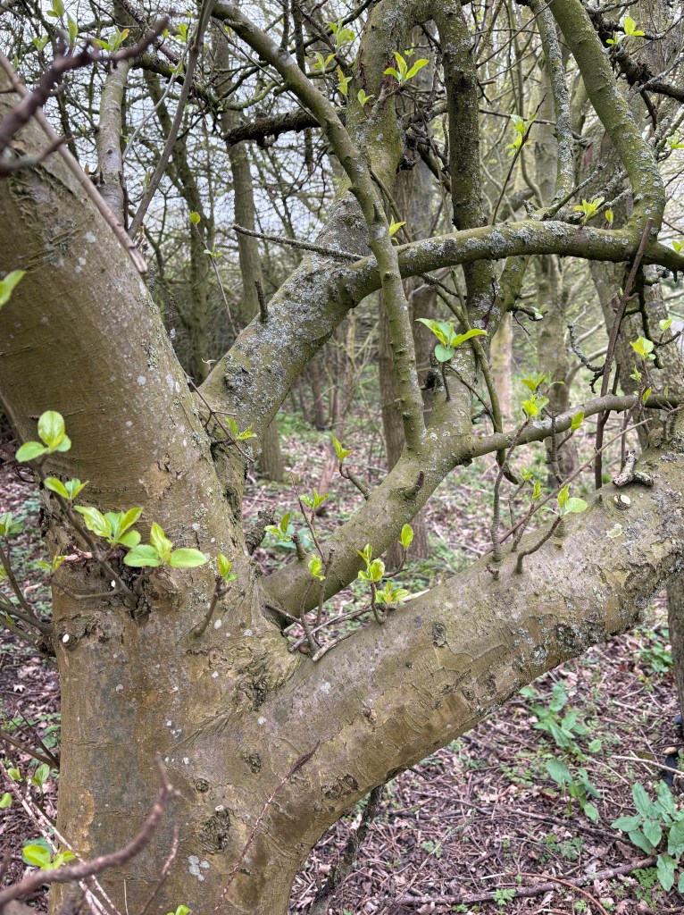 Okay, that’s enough poetic musing about the appeal of Lincolnshire. I’m here at the bend in the road, staring at half a dozen trees and wondering which one I need to attack with my pruning shears. Maybe a better arborealist than me could distinguish between the options but with neither fruit nor blossom to guide me, one tree looks very much like another. I dig out my smartphone and fire up the plant identification app, just like they would’ve done in ages past. All it needs is a photo of a leaf or a bit of bark to go on. Sessile Oak. Move on. Field Maple. Nice but no thanks. There we go: Apple. It’s the one I would have chosen had I been forced to stick my neck out but that counts for nothing without the courage of my convictions.